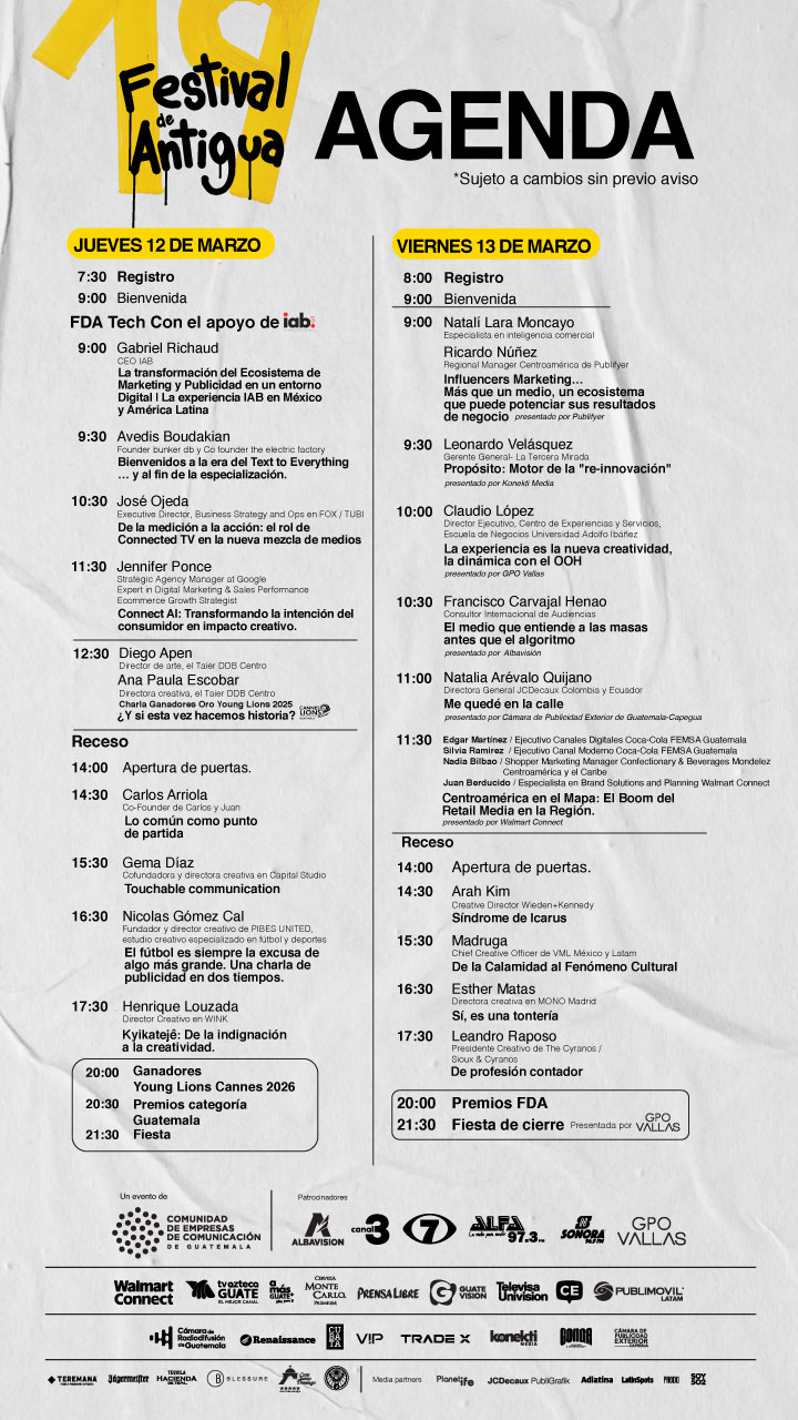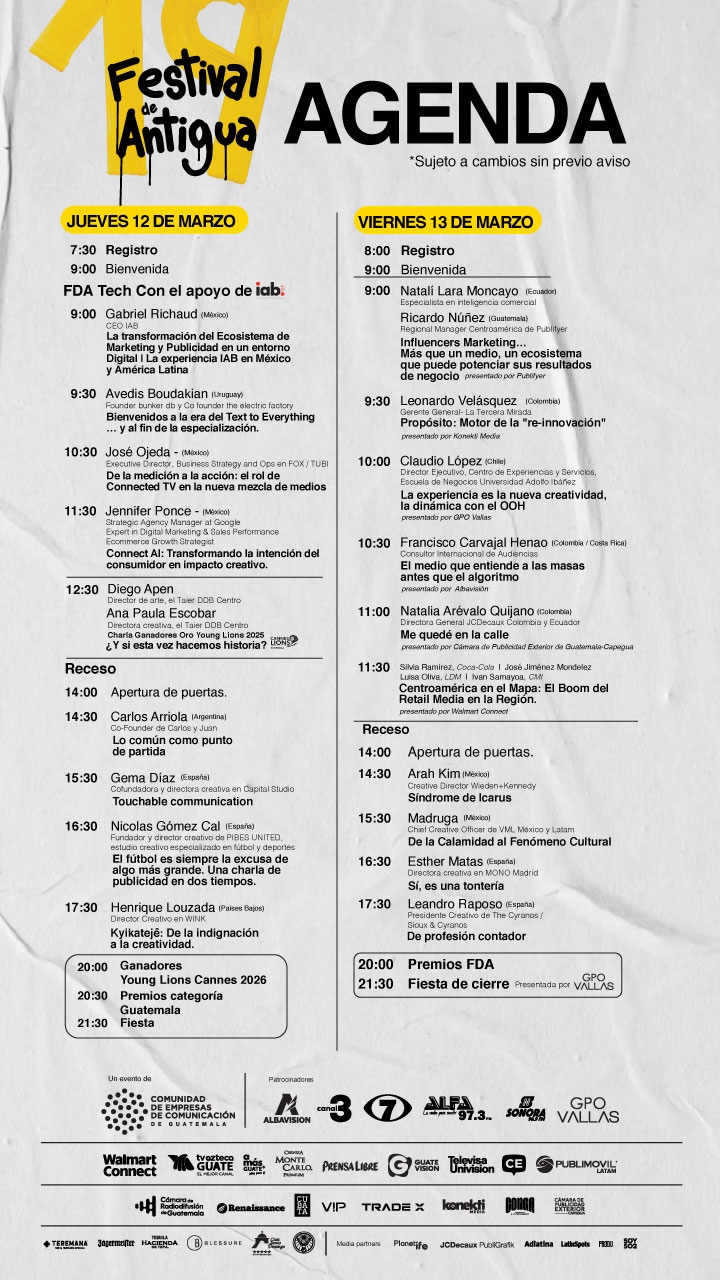 El Festival de Antigua celebra las ideas, la creatividad y la innovación que transforman la comunicación en la región.